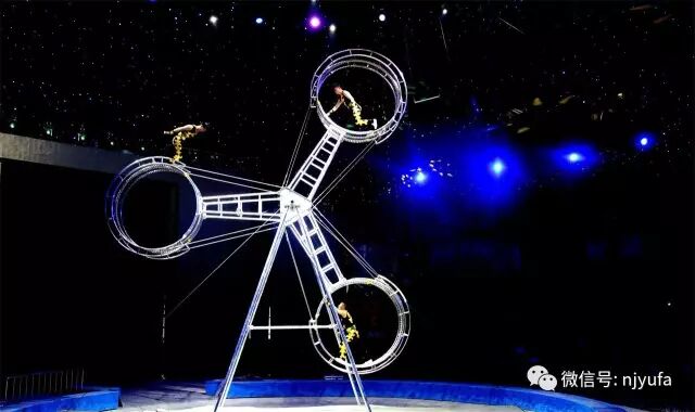 表演者在急速旋轉(zhuǎn)的高空飛輪上